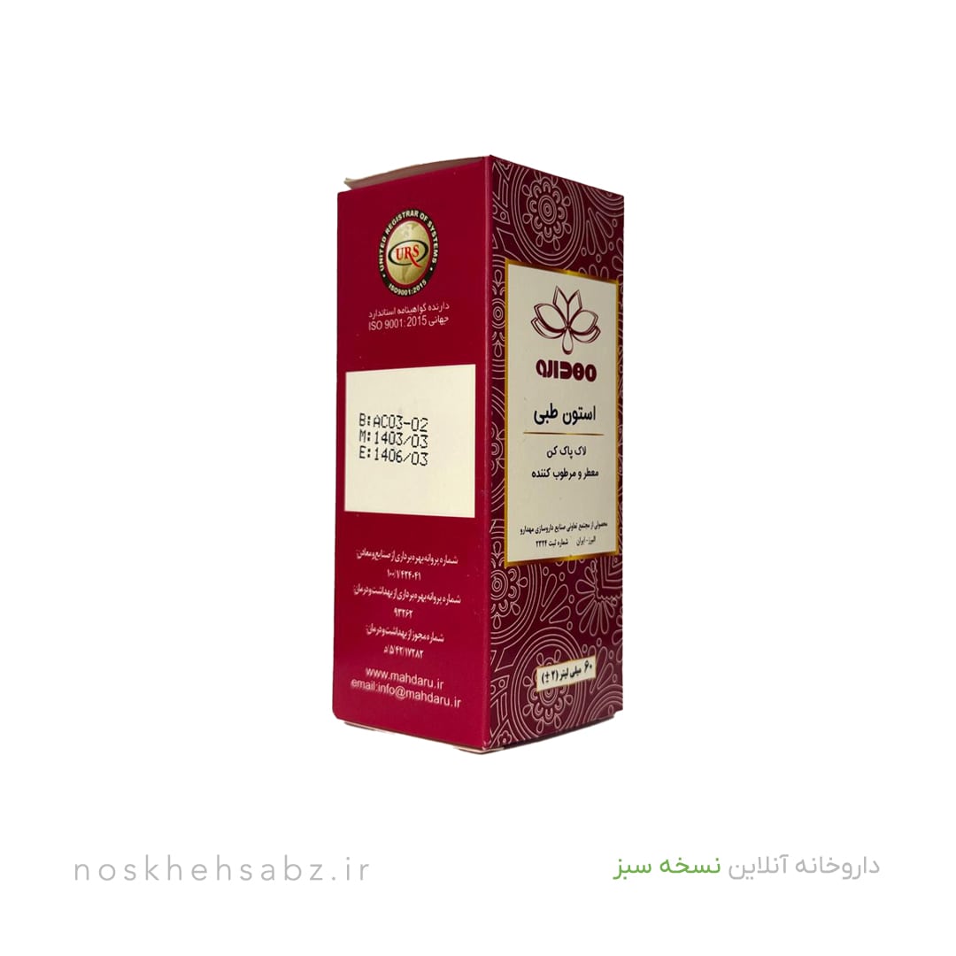 استون یکی از قدیمی ترین و محبوب ترین پاک کننده های لاک ناخن است که خاصیت پاک کنندگی بسیار قوی و فوق العاده ای دارد. با وجود اینکه امروزه انواع مختلفی از فرآورده های لاک پاک کن به بازار عرضه شده اند استون هنوز هم به دلیل تاثیر سریعی که در پاک کردن لاک ناخن دارد بسیار محبوب و پرطرفدار است. صنایع داروسازی مهدارو از جمله شرکتهای ایرانی است که اقدام به تولید استون طبی کرده است. این محصول که با نام مهداستون هم شناخته میشود معطر بوده و اثرات مرطوب کنندگی نیز دارد.
